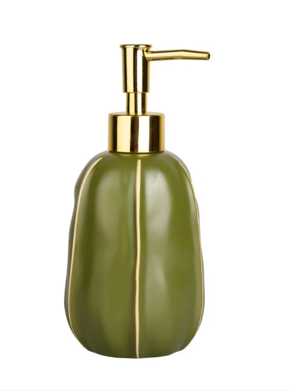 Дозатор настольный для ванной комнаты цилиндрической формы. Предназначен для порционной подачи мыла, шампуней и других гелеобразных жидкостей. Изготовлен из керамики. Подача моющего средства осуществляется с помощью пластиковой помпы. Влагоустойчив. Объем 360 мл.