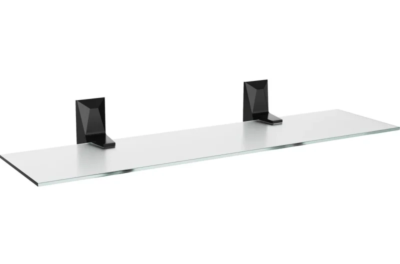"ICE" Black – Стеклянная полка для ванной: свежесть и функциональность в каждой детали! Позвольте стеклянной полке "ICE" Black оживить вашу ванную комнату и сделать ее более организованной и стильной. Обогатите ее функциональность и подчеркните ваш внимание к деталям, добавляя свежесть и нотку роскоши вашему повседневному уходу за собой.