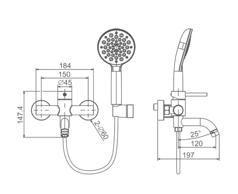 • Душевой шланг: силиконовый 1,5 м