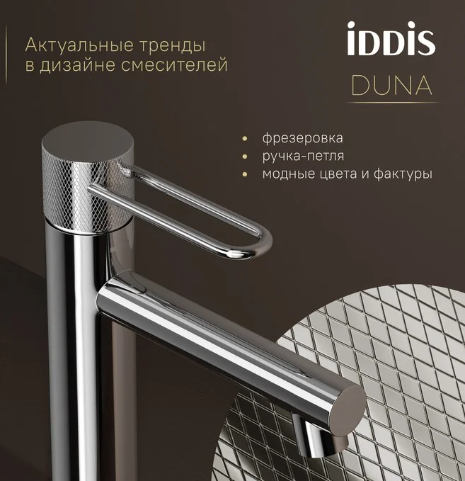Смеситель для умывальника Duna – воплощение актуальных трендов в дизайне смесителей в безупречном исполнении: фрезеровка, изысканная ручка-петля, модные цвета и фактуры.