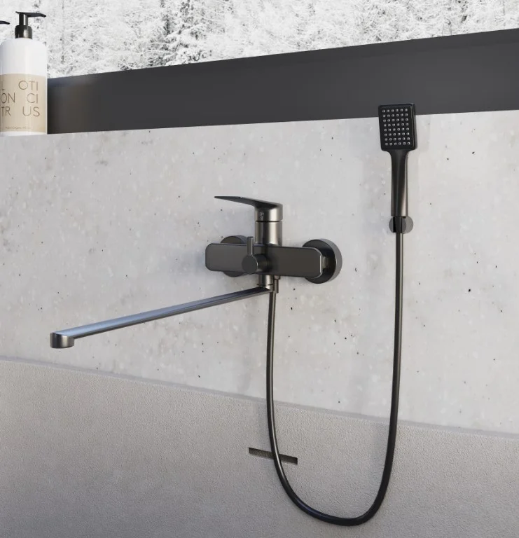 Смеситель для ванны универсальный AVRORA Grand AV3830 с поворотным изливом графит