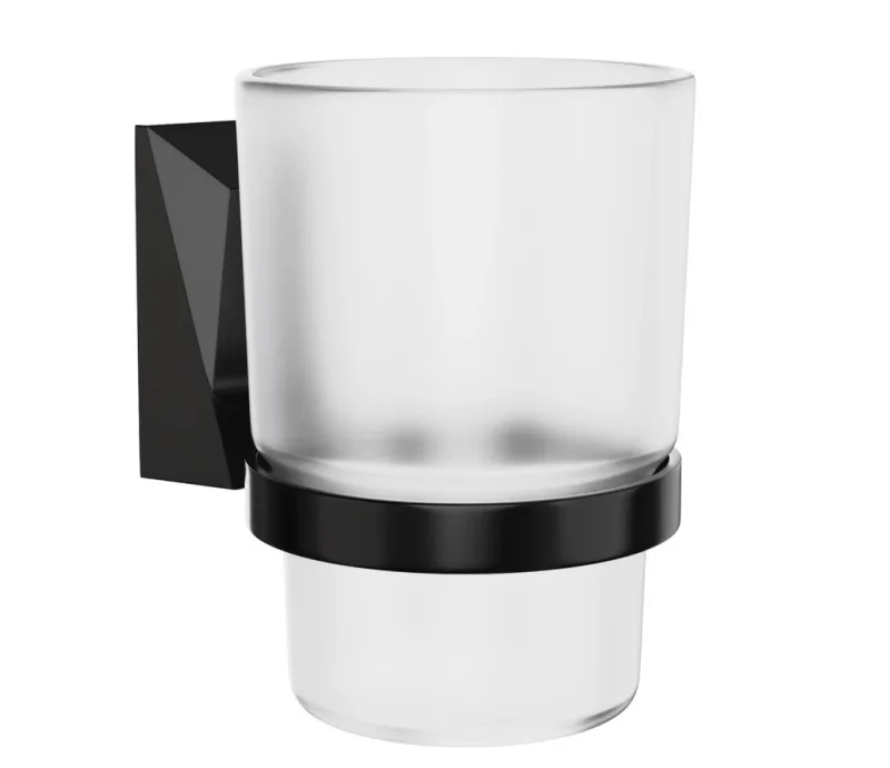 Геометрические линии и стеклянный стакан "ICE" Black придают вашей ванной комнате современный и утонченный вид, создавая атмосферу роскоши.