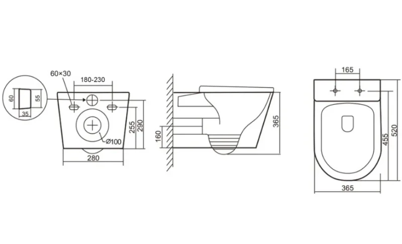 Система антивсплеск: Специальная форма чаши удерживает воду и минимизирует брызги, обеспечивая комфортное использование.