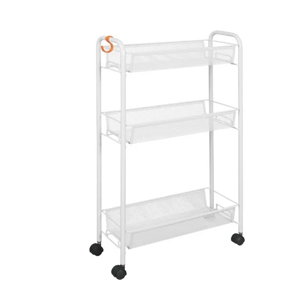 Сборно-разборная конструкция, сборка без инструментов, три удобных корзины, увеличенное расстояние между нижними корзинами для высоких предметов. Пластиковые колеса. Пластиковый крючок для мелочей, допустимая нагрузка до 10 кг на корзину.