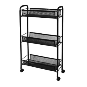 Сборно-разборная конструкция, сборка без инструментов, три удобных корзины, увеличенное расстояние между нижними корзинами для высоких предметов. Пластиковые колеса. Пластиковый крючок для мелочей, допустимая нагрузка до 10 кг на корзину.