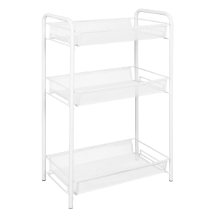 Сборно-разборная конструкция, сборка без инструментов, 3 удобных корзины, увеличенное расстояние между нижними корзинами для высоких предметов. Пластиковый крючок для мелочей, допустимая нагрузка до 10 кг на корзину