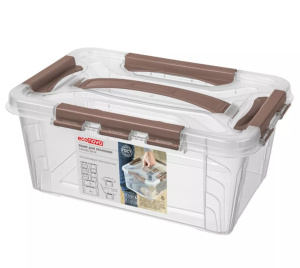 Ящик 4.2 литра подходит для строительных инструментов, рыболовных снастей, швейных материалов, предметов для хобби и детского творчества, медикаментов, косметики и многого другого. Особая крышка может открываться откидным способом, а может сниматься полностью. Прочная ручка и надёжные замки позволяют спокойно и с удобством брать ящик с собой.
