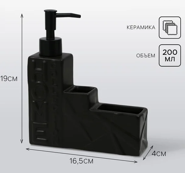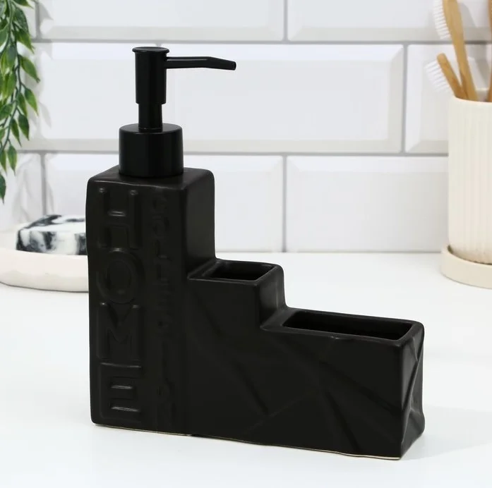 Компактный размер дозатора и продуманное исполнение, делают его идеальным для размещения в зоне мойки на кухне или раковины в ванной.