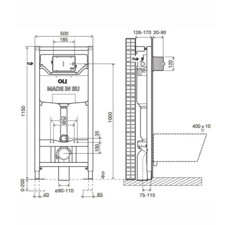 Инсталляция Oli 120 для подвесного унитаза. Используется при проведении монтажных работ в качестве крепёжной основы. Позволяет крепко зафиксировать унитаз, подвести к нему воду, канализацию.