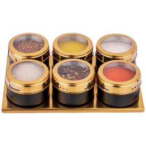 Набор для специй AGNESS – это отличное решение, позволяющее удобно использовать специи и приправы во время приготовления. Засыпанные в емкость специи, их вид и количество видно сквозь прозрачную крышку. Дозировать порцию специй очень легко: по боковой стенке крышки есть два вида отверстий - большего и меньшего размера и достаточно лишь прокрутить крышку до нужного отверстия, чтобы получить нужное количество. Крышка закрывается плотно, тем самым защищая специи от влаги и выветривания аромата. Каждая емкость для специй оснащена магнитом, вмонированным в дно, что позволяет при необходимости закрепить ее на любой другой металлической поверхности, например, дверце холодильника или металлической вытяжке над плитой.
