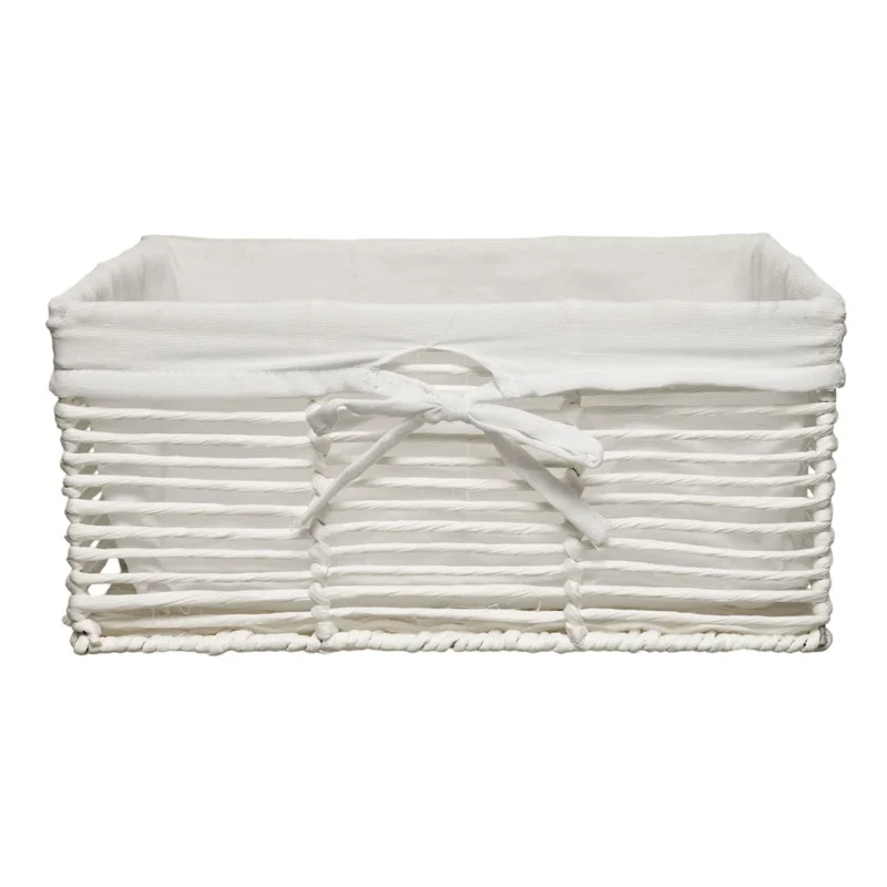 Стеллажная корзина из бумажной ленты в трендовом белом цвете идеально впишется в любой современный интерьер. Создана из природных материалов, поэтому подойдет приверженцам эко-тренда.