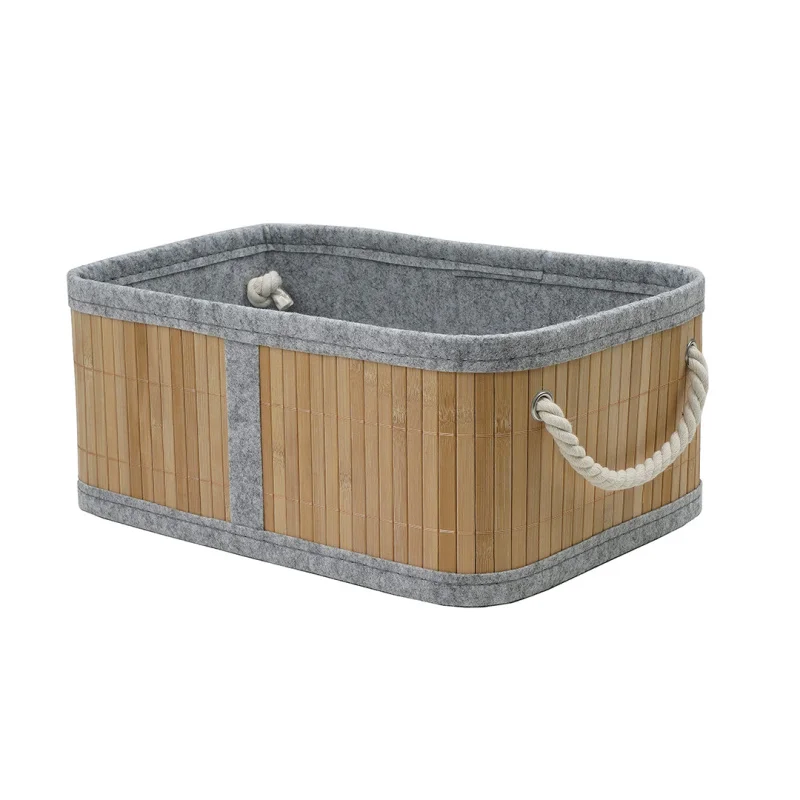 Стеллажная корзина с ручками "Бамбук" изготовлена из прочных бамбуковых прутьев, а внутри проклеена слоем мягкого фетра. Благодаря такой внутренней отделке внутри короба можно хранить деликатные вещи, требующие бережного отношения. Снаружи изделие дополнено белыми ручками канатами, прочными в эксплуатации. Корзина для белья великолепно держит форму, а скругленные углы добавляют ей визуальной привлекательности. В коллекции три удобных размера – соберите всю линейку и наслаждайтесь порядком и эстетикой вокруг.