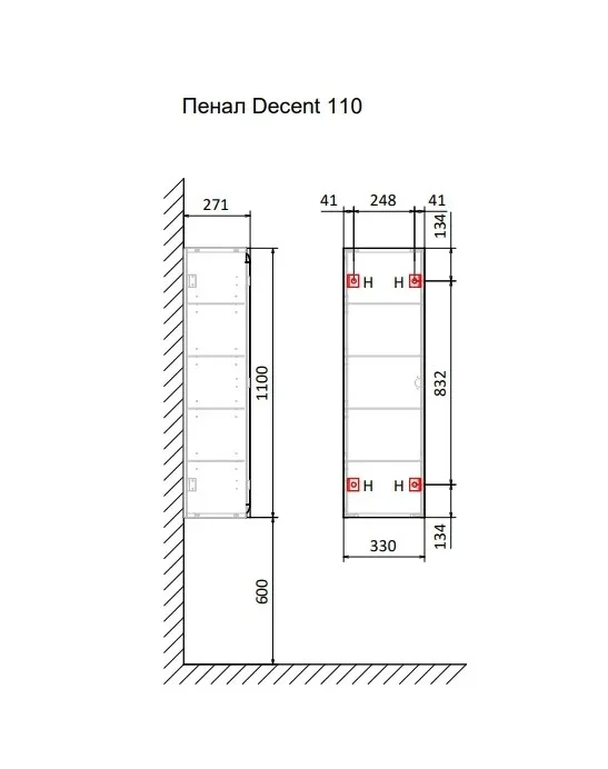 Пенал коллекции Decent выполнен из МДФ в пленке ПВХ