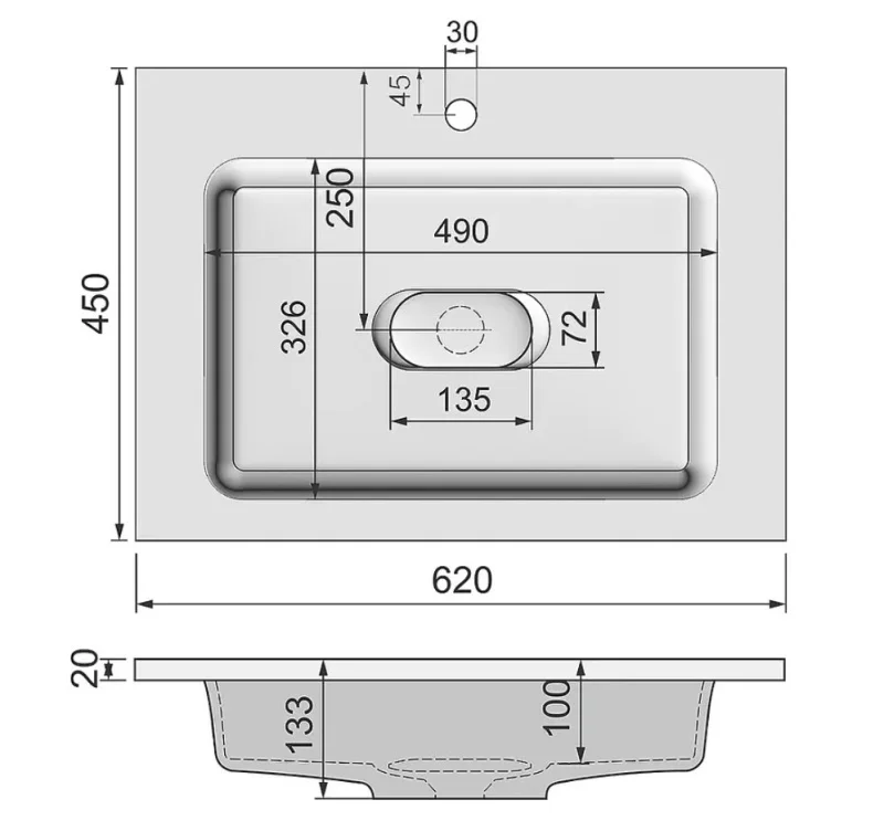Размеры (ШхВхГ): 62 x 13,3 x 45 см