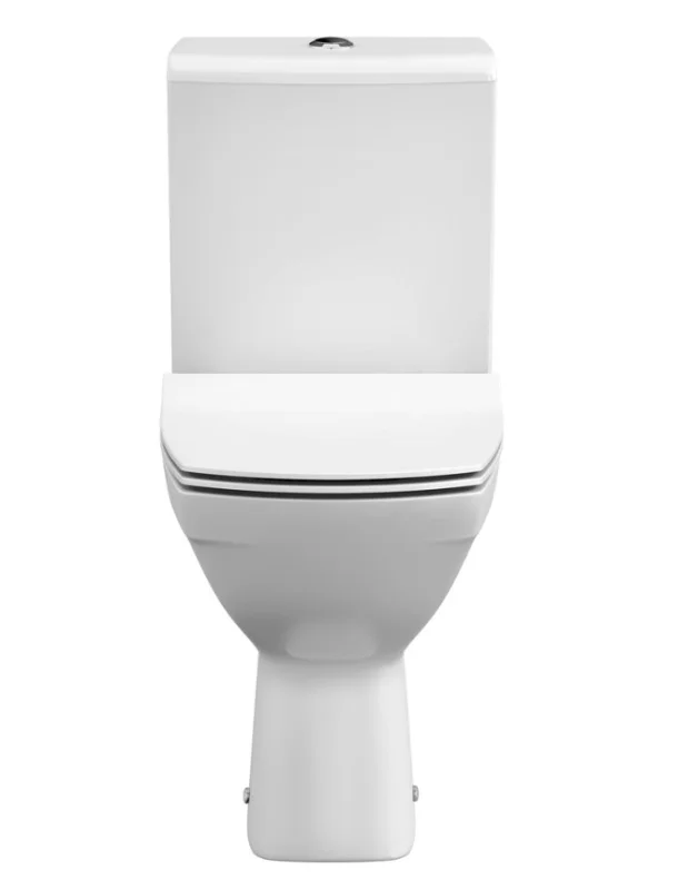 Унитаз керамический безободковый, горизонтальный выпуск; бачок смывной керамический с нижним подводом воды; двухуровневый спускной механизм; сиденье для унитаза из дюропласта ультратонкое легкосъемное с функцией плавного закрывания; монтажный комплект; инструкция/гарантийный талон