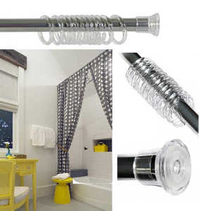 Устанавливается в распор между двумя стенами в ванных комнатах и любых других помещениях, длина карниза может меняться от 120 до 210см.