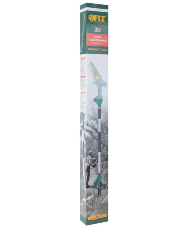 Телескопическая штанга Fit 79945 предназначена для использования с цепными аккумуляторными пилами, особенно при работе на высоте или в труднодоступных местах. Она позволяет регулировать длину штанги в диапазоне от 110 до 168 см