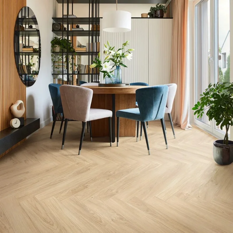 Коллекция ANGLETERRE — это первая коллекция ламината Tarkett с форматом укладки «Английская ёлка». Притягательной особенностью данной коллекции является уникальный формат укладки. В этом способе укладки более короткая сторона одной планки соединяется с более длинной стороной другой планки под прямым углом.