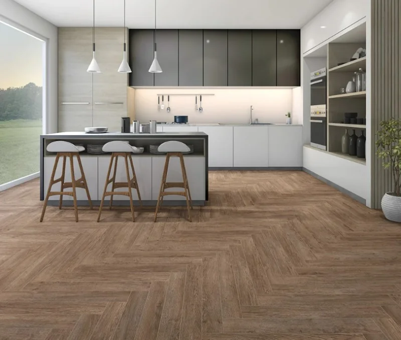Коллекция ANGLETERRE — это первая коллекция ламината Tarkett с форматом укладки «Английская ёлка». Притягательной особенностью данной коллекции является уникальный формат укладки. В этом способе укладки более короткая сторона одной планки соединяется с более длинной стороной другой планки под прямым углом.