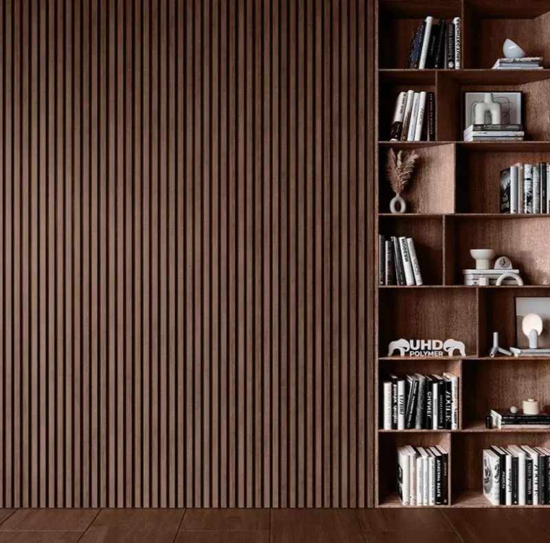 Цветные панели UHD Polymer выкрашены в массе в черный цвет, что позволяет создать современный интерьер и подчеркнуть текстуру натурального дерева, нанесенную на панель сверху.