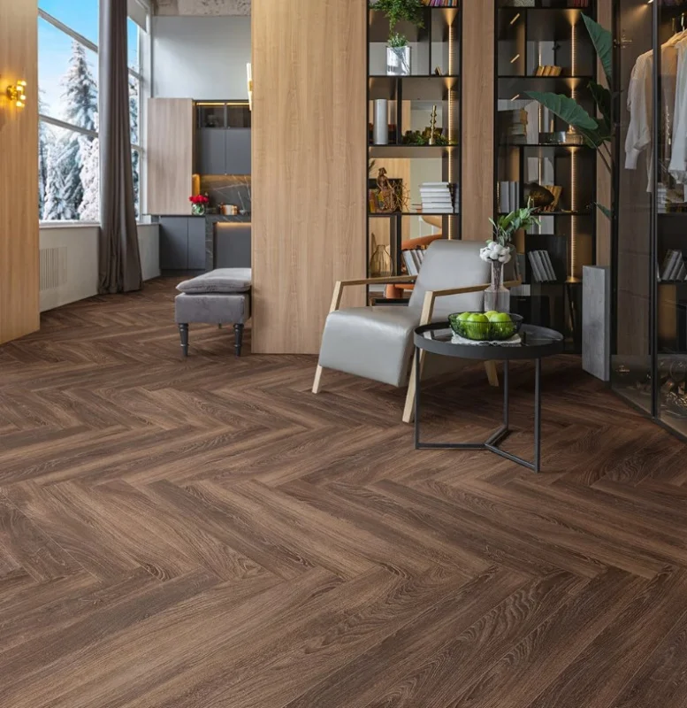 Коллекция ANGLETERRE — это первая коллекция ламината Tarkett с форматом укладки «Английская ёлка». Притягательной особенностью данной коллекции является уникальный формат укладки. В этом способе укладки более короткая сторона одной планки соединяется с более длинной стороной другой планки под прямым углом.