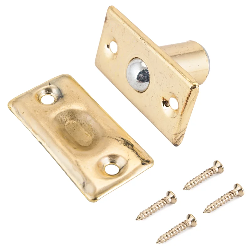 Фиксатор дверной с шариком. Предназначен для запирания межкомнатных дверей (алюминиевых, деревянных, из МДФ и ПВХ). Защелка не запирает, а защелкивает полотно, тем самым удерживая его в дверном проеме. Материал - ЦАМ, гальваническое покрытие. Габариты торцевой планки - 47х20 мм. В комплекте шурупы и ответная планка.