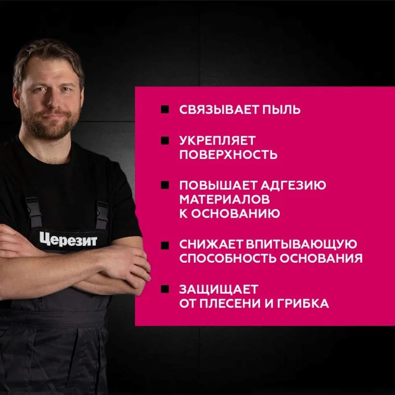 Повышает адгезию материалов к бетону; паропроницаемая; выпускаются «зимняя» (морозостойкая) и «летняя» версии грунтовки; пригодна только для внутренних работ; готова к применению; экологически безопасна.