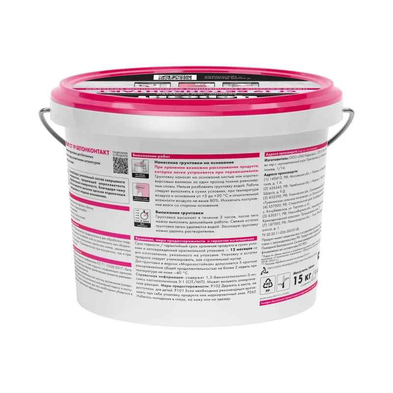 Бетонконтакт Ceresit CT19 применяется при обработке слабо впитывающих бетонных поверхностей перед нанесением плиточного клея или штукатурки. Он состоит из кварцевого наполнителя, который обеспечивает надежное сцепление материалов с поверхностью. Грунтовку можно использовать как внутри, так и снаружи помещений, она является готовой к использованию без необходимости разбавления.