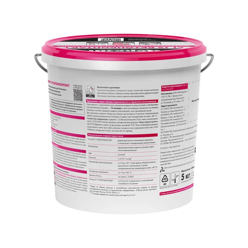 Грунтовка CT 19 предназначена для обработки гладких, преимущественно бетонных, вертикальных оснований перед нанесением цементно-песчаных штукатурок и плиточных клеев при внутренних и наружных работах. В состав грунтовки входит мелкий кварцевый песок, придающий шероховатость обработанной поверхности, благодарячему обеспечивается высокая адгезия отделочных материалов к гладким основаниям.