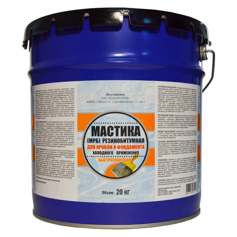 Область применения: Мастика предназначена для антикоррозионной защиты и гидроизоляции бетонных, кирпичных, каменных, металлических, деревянных и других конструкций, в том числе наземных и подземных трубопроводов, защиты днищ и арок автомобилей, в качестве шумопоглощающего и виброизолирующего покрытия. Применяется для устройства и ремонта кровли, заделки трещин и швов при кровельных работах, для приклеивания различных строительных материалов, особенно в местах изгибов и примыканий элементов кровли (трубы, купола, сливы, воронки, ограждения и т.д.), применяется для теплоизоляции и антикоррозийной защиты металлических труб холодного и горячего водоснабжения и канализации, препятствует образованию конденсата. Используется для финишного покрытия кровли.