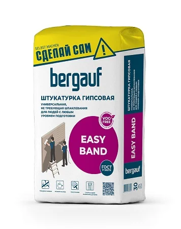 Гипсовая штукатурка Bergauf Easy Band предназначена для выравнивания стен и потолков в помещениях с нормальной влажностью. Подходит для нанесения на различные минеральные основания, включая бетон, кирпич, газобетон, цементные и гипсовые штукатурки, а также гипсокартон.