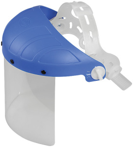 "ЛЮКС". Оголовье с реечным механизмом регулировки. Предназначен для индивидуальной защиты глаз и лица работника от воздействия твердых частиц камня, дерева, металла и т.п при механической обработке поверхностей, а так же в быту при работе с пневмо-и электроинструментом, ландшавтных работ и т.п. Мат: поликарбонат, пластик.