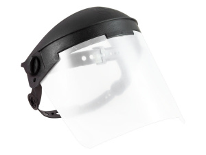 Щиток защитный используется для защиты лица и глаз от воздействия твердых частиц и неразьедающих жидкостей. Состоит из наголовного крепления и ударостойкого прозрачного корпуса.Материал: органическое стекло.