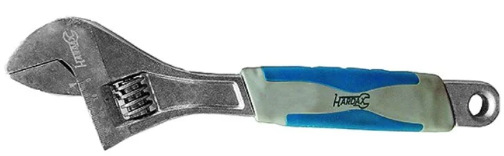 Разводной ключ 200 мм, двухкомпонентная рукоятка Hardax 43-1-320 - удобный инструмент для работы с крепежом различного типа и размеров. Рукоять с противоскользящим чехлом существенно повышает качество эксплуатации.
