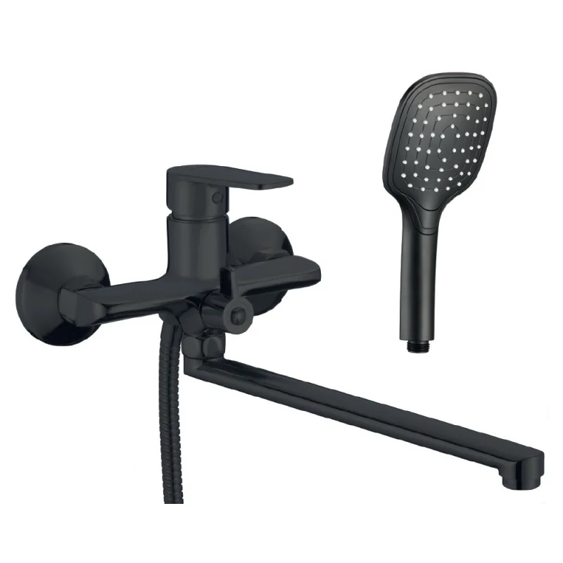 • Современный дизайн: смеситель выполнен в элегантном черном цвете, который придает ванной комнате утонченный и современный вид. Благодаря универсальному дизайну, он легко вписывается в различные стилевые решения интерьера — от минимализма до классики.