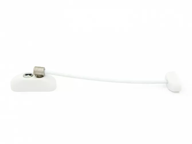 Тросовый блокиратор с ключом – хит среди товаров детской безопасности. Когда трос пристегнут к площадке и повернут на ключ, распахнуть окно настежь уже нельзя. Можно лишь приоткрыть его на безопасную ширину: примерно до 15 см.