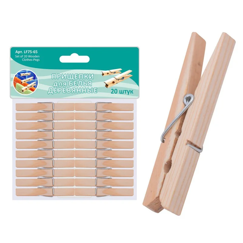 Прищепки для белья деревянные LF75-65 (Мультидом) (упак 20 шт) – это не просто инструмент для сушки белья, а настоящее произведение искусства, выполненное с большим вниманием к деталям.
