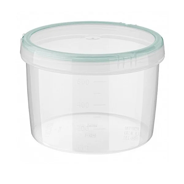 Банка «Винтаж» имеет винтовую крышку и подходит для хранения, замораживания и разогревания в микроволновой печи (без крышки) различных продуктов и готовых блюд. Плотно прилегающая крышка дополнена окрашенным в яркий цвет эластичным материалом, который надежно предохраняет содержимое от посторонних запахов. Наполненную банку можно перевозить, не опасаясь, что крышка откроется. Прозрачные корпус и крышка позволяют видеть содержимое, а мерная шкала на корпусе поможет определить объем продукта. Банки можно ставить одну на другую для экономии места в холодильнике или кухонном шкафу. Можно мыть в посудомоечной машине.