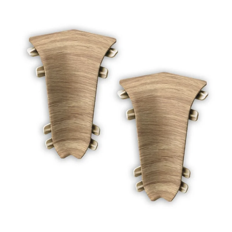 Внутренний уголок устанавливается на стыке двух отрезков напольного плинтуса, которые соединяются в углу комнаты. Он выбирается в зависимости от цвета и размеров плинтуса.