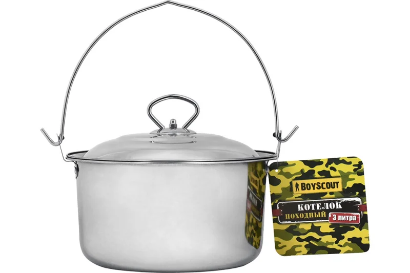 Походный котелок с крышкой BOYSCOUT 3л 61161 выполнен из нержавеющей стали, что гарантирует защиту от коррозии и длительный срок службы. Объем 3 литра позволяет приготовить пищу на открытом воздухе для небольшой компании. Для удобства использования данная модель оснащена крышкой и ручкой.