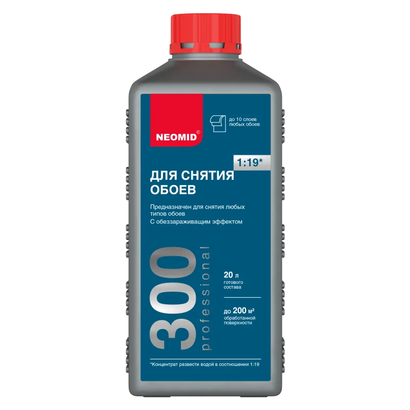 NEOMID для снятия обоев» предназначен для облегчения процесса снятия обоев и обеззараживания стен и остатков обоев (с помощью входящего в состав биоцида). Предотвращает попадание в воздух опасной пыли со спорами микроорганизмов, снижает риск возникновения аллергических реакций и инфекционных заболеваний. Нейтрализует запах затхлости. Быстро впитывается и проникает в старые обои на глубину до 10 слоев.