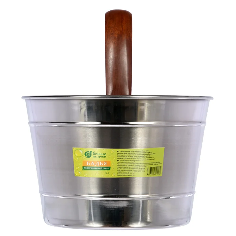 Материал: Бадья - нержавеющая сталь, ручка - дерево.