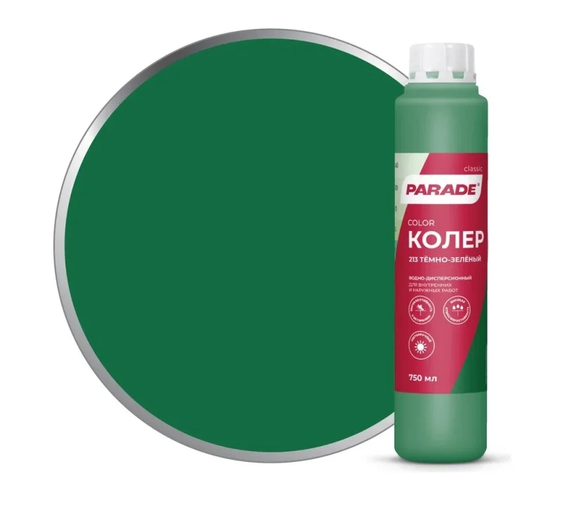 Колер PARADE является отличным решением для лакокрасочных материалов, обладающих экологической чистотой и основанных на водной основе. Он идеально подходит как для работ внутри помещений, так и для наружных работ. Этот колер разработан специально для тонирования всех видов красок, шпатлевок и декоративных штукатурок на водной основе. Он обеспечивает прекрасное качество окраски, сохраняя при этом безопасность и соответствие экологическим нормам. Кроме того, колер допускает использование в концентрированном виде для особых случаев оформления интерьеров и фасадов зданий. Это позволяет создавать уникальные эффекты и особые атмосферы в дизайне, придавая помещениям и зданиям индивидуальность и стиль.
