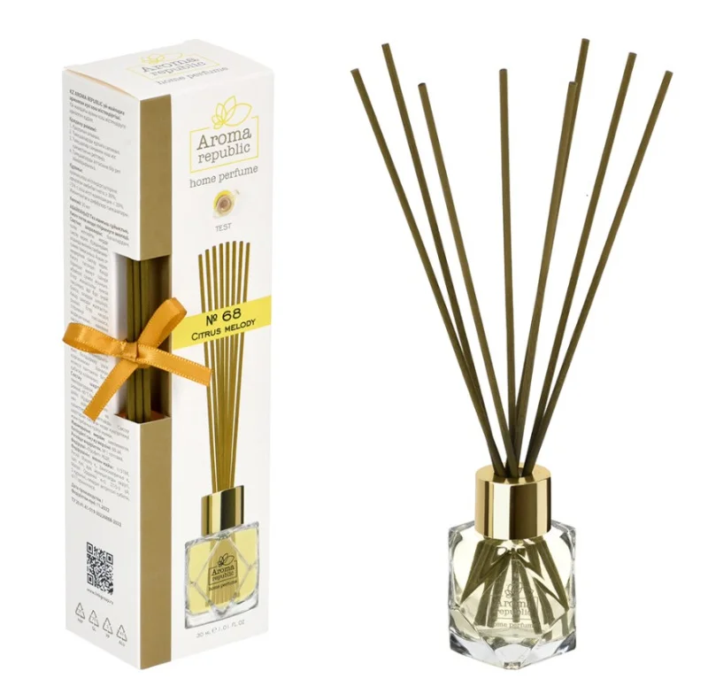 Комплектность: Флакон с ароматической жидкостью 30 мл, палочки 8шт.