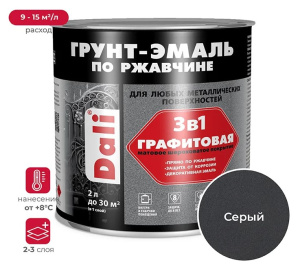 Грунт эмаль по ржавчине 3в1 Dali специально разработанная для металлических поверхностей, страдающих от ржавчины. Эмаль комбинирует в себе свойства преобразователя ржавчины, антикоррозионного грунта и декоративной эмали, обеспечивая трехступенчатую систему защиты. Барьерная, антикоррозионная и протекторная ступени гарантируют надежную защиту поверхности, при этом позволяя наносить на ржавчину. Благодаря повышенной адгезии к новым, ранее окрашенным и пораженным коррозией поверхностям, она формирует гладкое, долговечное и суперпрочное покрытие. Эта краска отличается рядом особенностей, которые делают ее незаменимой для различных проектов. Она устойчива к воздействию влаги, масел, слабых кислот и щелочей. Благодаря своей устойчивости к выгоранию, она не разрушится под воздействием УФ излучения.