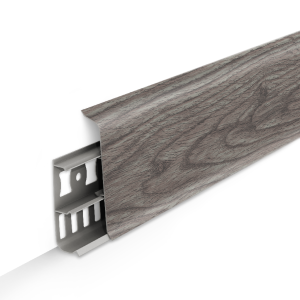 Плинтус Лексида 80мм предназначен для декоративного оформления и укладки по краям комнаты между стеной и полом. Плинтус имеет две части: одна фиксируется на стене, а другая, выполненная с элементами декора, крепится сверху с помощью специальных клипс.