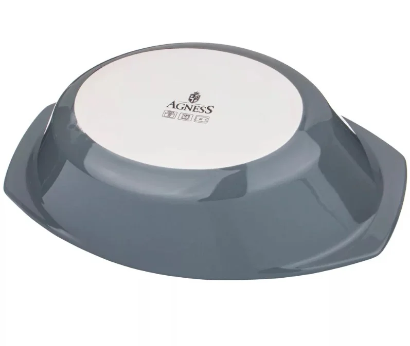 Коллекция посуды для запекания Agness из жаропрочного фарфора стильная и современная, экологичная, химически инертная, стойкая к механическим повреждениям. Все изделия обладают повышенной термостойкостью и с лёгкостью выдерживают нагревание до 380 градусов. Благодаря своей низкой теплопроводности, формы для запекания способны длительное время поддерживать в горячем виде приготовленные блюда. Овальные и круглые формы со стеклянными жаропрочными крышками и без, порционные кокотницы с фарфоровыми крышками функциональны и хороши как для приготовления, так и для подачи и сервировки стола. Все изделия сертифицированы и безопасны для контакта с пищей. Можно смело мыть в посудомоечной машине, ставить в микроволновую печь и духовой шкаф. Избегайте резких перепадов температур! Нельзя ставить в раскаленную духовку, блюдо должно нагреваться постепенно! Выбирайте соответствующие рецепты и изделия прослужат длительное время.
