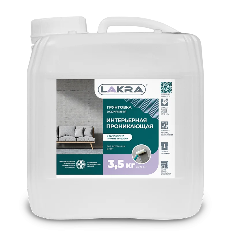 Интерьерная грунтовка является эмульсией, которая обеспечивает прочное сцепление верхних слоев покрытия с поверхностью. Она используется в качестве стартового слоя для различных поверхностей и наносится перед покраской, наклейкой обоев, укладкой плитки, шпатлевкой, штукатуркой и другими отделочными работами. Грунтовка укрепляет и выравнивает основание, а также улучшает сцепление между слоями облицовочных материалов. Она легко проникает в пористые и рыхлые поверхности, а также может наноситься на пол перед заливкой наливного пола. Грунтовка улучшает адгезию, защищает от коррозии, укрепляет поверхность и обеспечивает защиту от влаги.