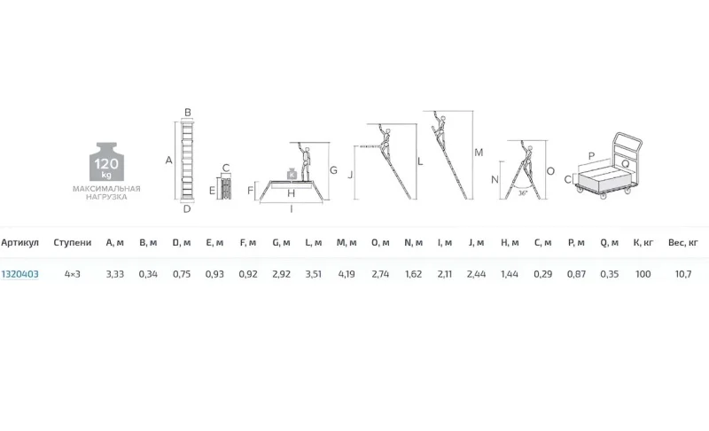Легко преобразуется в помост-платформу, стремянку, приставную лестницу, лестницу с выносом.