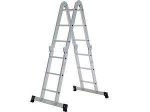 Четырехсекционная лестница-трансформер Новая Высота 4х3 ступени 1320403 отличается универсальностью, компактностью при хранении, устойчивостью.